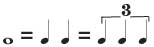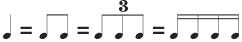 Реже встречается четвертная триоль, в ней делится на три части половинная нота: