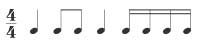 Предлагаю проделать следующее упражнение: медленно отстукивайте ногой метр в размере 4/4 (пятка-носок), а руками хлопайте ритмический рисунок:
