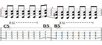 Упр.4 Более частая смена аккордов. Переходя от одного аккорда к другому переставляйте пальцы одновременно. Выделяйте акценты >. Начальный темп 100. В более быстром темпе - 100% поп-панк тема.