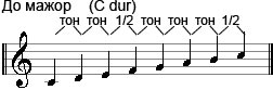 Мажор - лад, состоящий из 7 звуков, тоническое трезвучие которого - мажорное. Строение натуральной мажорной гаммы следующее: