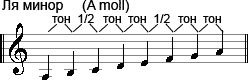 Минор - лад, состоящий из 7 звуков, тоническое трезвучие - минорное. Звучание грустное, меланхоличное. Вот строение натуральной минорной гаммы: