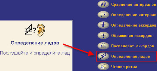 1. Открываем программу Ear Master Pro и выбираем упражнение "Определение ладов" левой кнопкой мыши