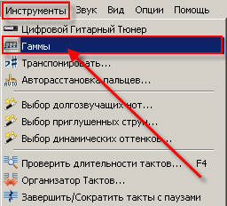 Или жмем на вкладку "Инструменты"-> "Гаммы"