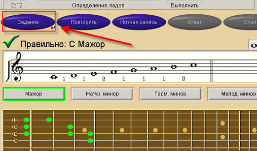 Получив положительный ответ от программы, жмите на "Задание" и слушайте следующий вариант лада.