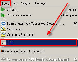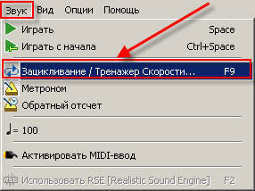 Переходим на вкладку "Звук" -> Зацикливание/ Тренажер скорости