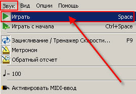 Переходим на вкладку "Звук" -> "Играть", сначала слушаем 4 отсчета и затем начинаем играть под метроном.