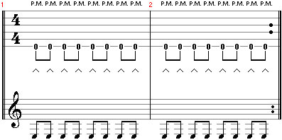 Давайте вспомним упражнения дла правой руки при игре по открытым 6, 5 и 4 струнам (я их давал в своем бесплатном курсе), приглушая слегка ладонью правой руки.