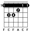 Ура! Вот и ваше первое баррэ! Поздравляю! Аккорд F (Фа-мажор)