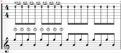 Упр. 1 Мизинец ставим на первую струну, 12 лад и, не отпуская его, играем все упражнение указательным пальцем: