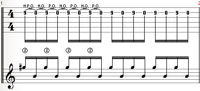 Упр.4 Теперь у нас остался неиспользованный мизинец. Указательный палец на девятом ладу , не отпуская его, играем всё упражнение, предназначенное для растяжки мизинца.