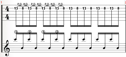Используя принцип упр.1, играем мезинцем сначала на 13 ладу, затем на 14 и далее – на сколько сможете:
