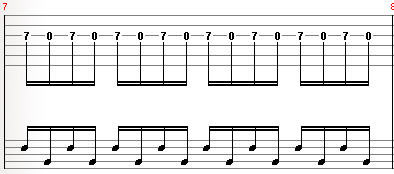 7. В конце играете мажорный септаккорд от ноты Ми (E7) в открытой позиции.