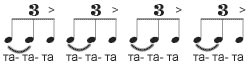 Объединим с помощью лиги первую и вторую ноты триоли, а на третьей сделаем легкий акцент: